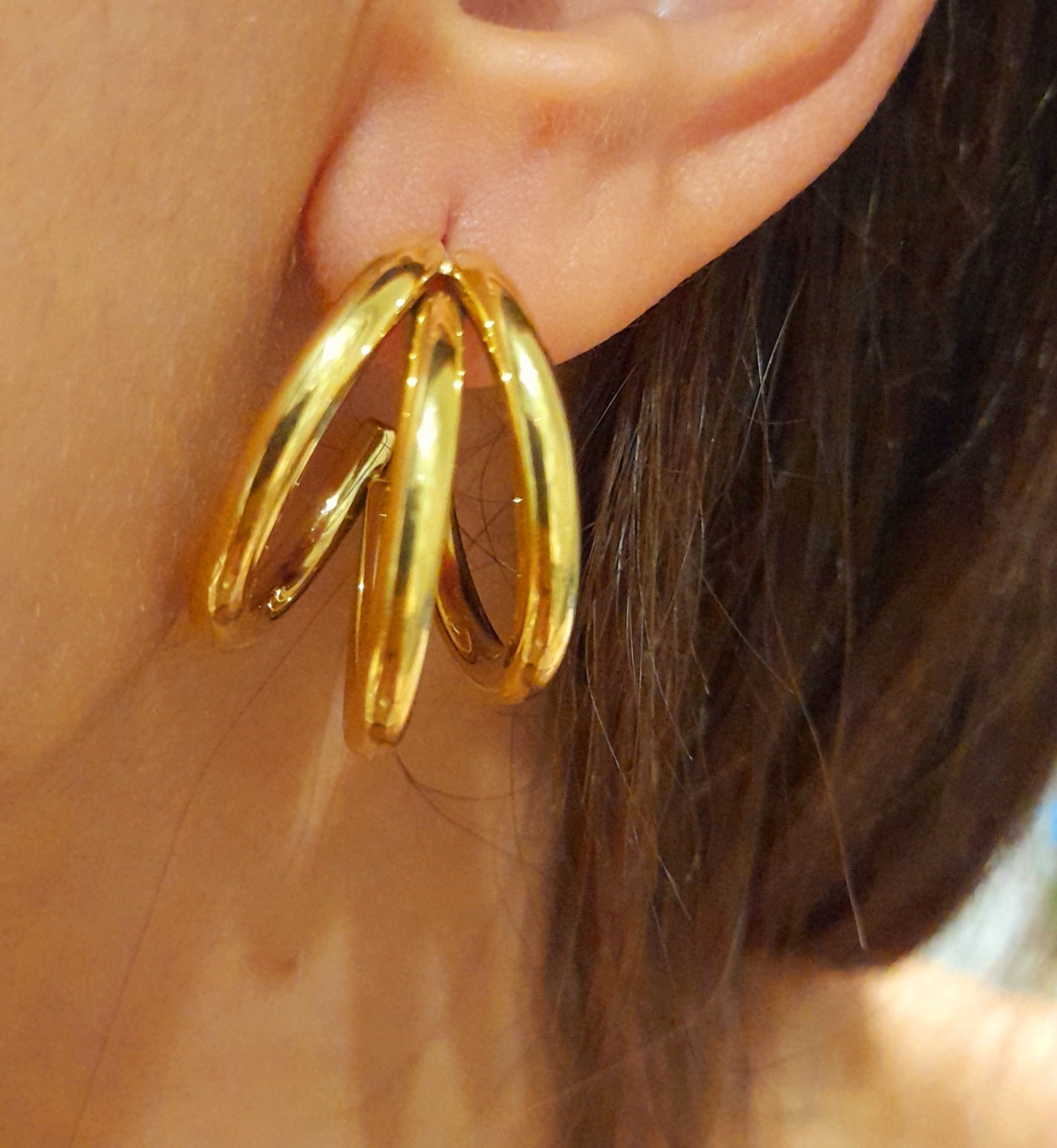 Les créoles Lisa se distinguent par leur design élégant, composé de trois anneaux disposés côte à côte, créant un effet à la fois tendance et raffiné. Conçues en acier inoxydable, elles allient résistance et confort, parfaites pour être portées au quotidien tout en apportant une touche contemporaine à vos tenues.