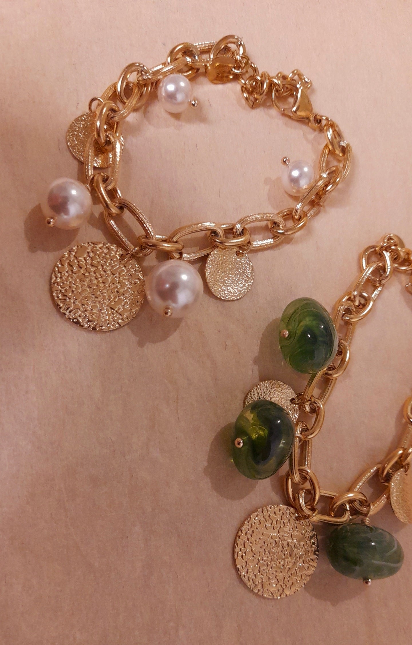 Apportez une touche délicate et raffinée à votre poignet avec le bracelet Anaya. Ce bijou sur chaîne en acier inoxydable est composé de perles en résine et de pampilles rondes texturées, qui apportent mouvement et élégance à chaque geste.