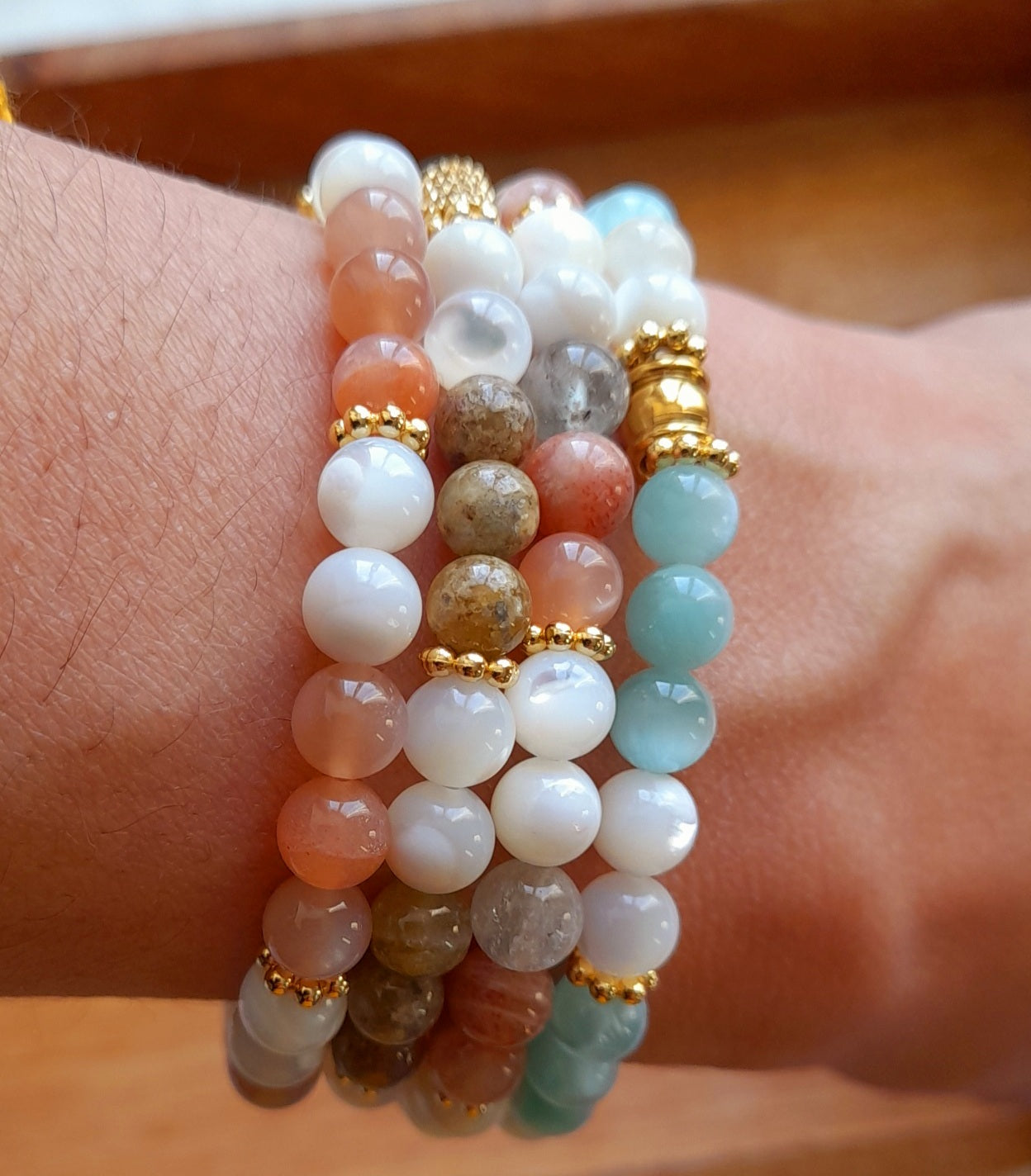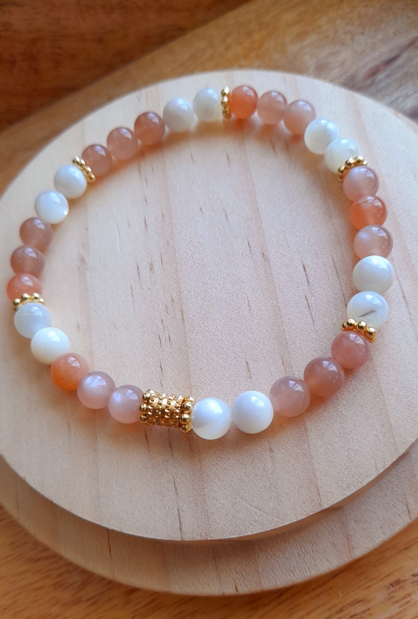Bracelet en Nacre et Pierre du Soleil pierres naturelles. Réalisation et inspiration unique de chez Limdea