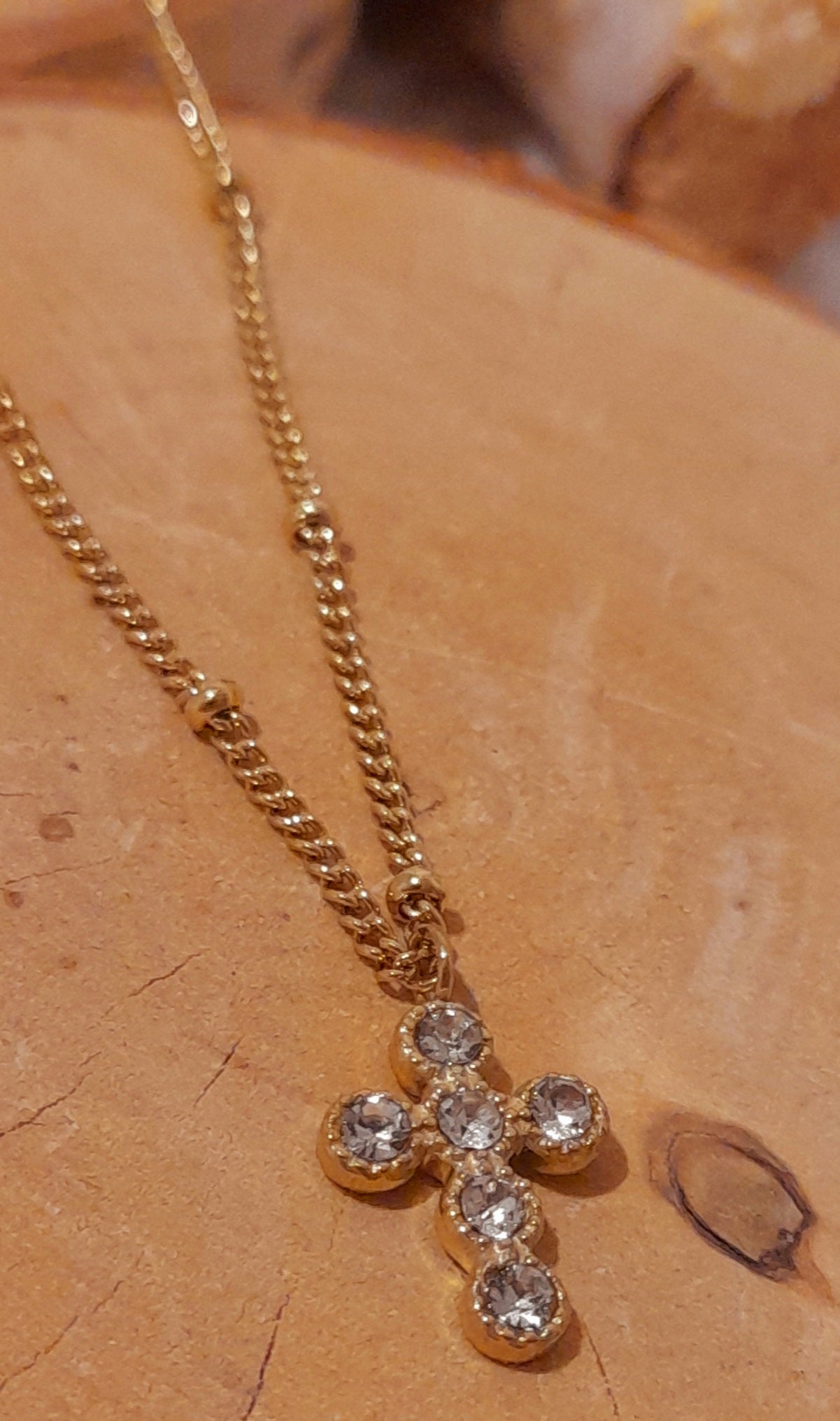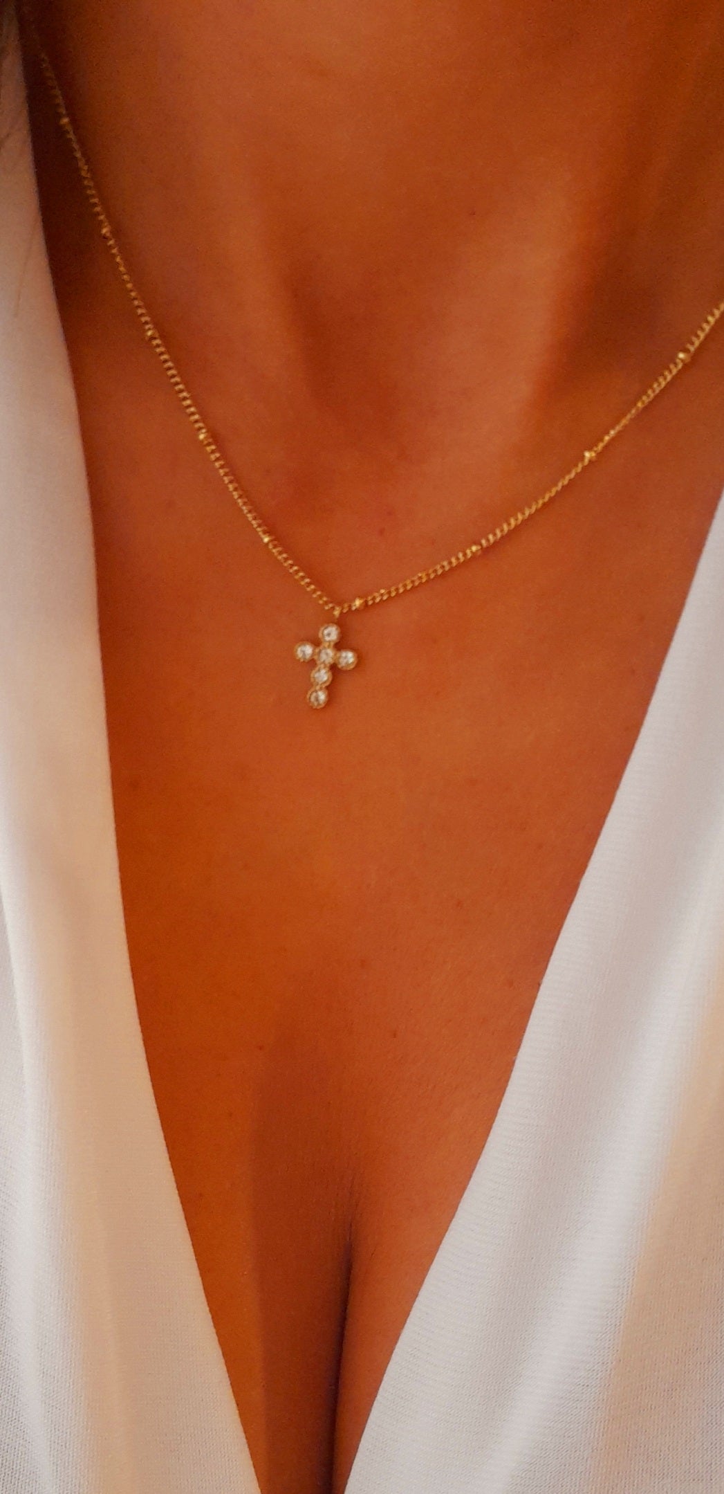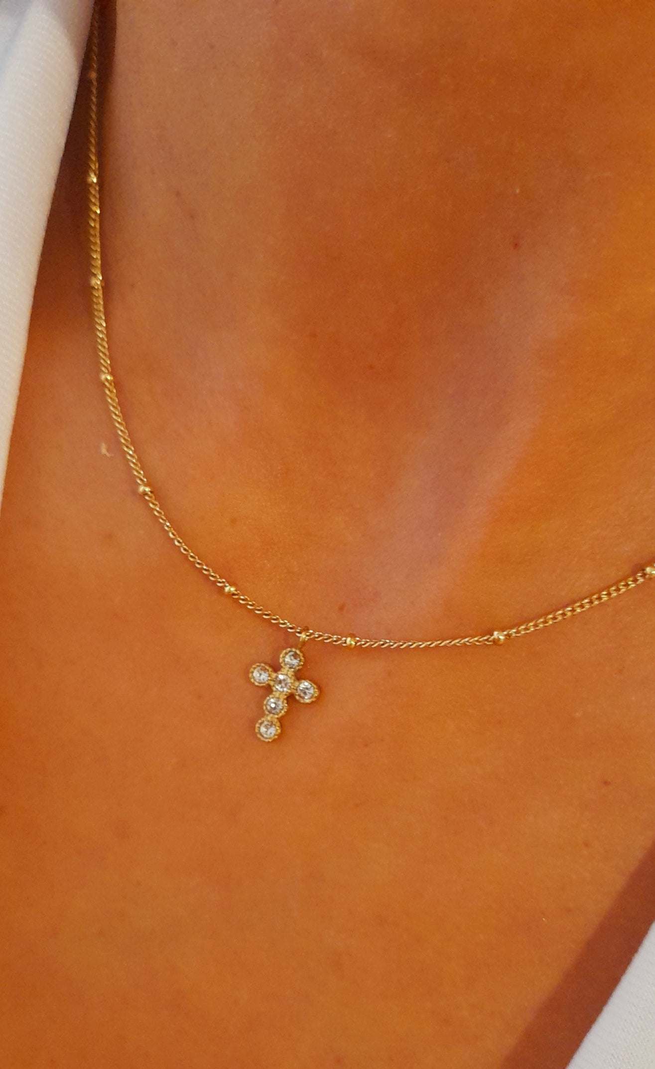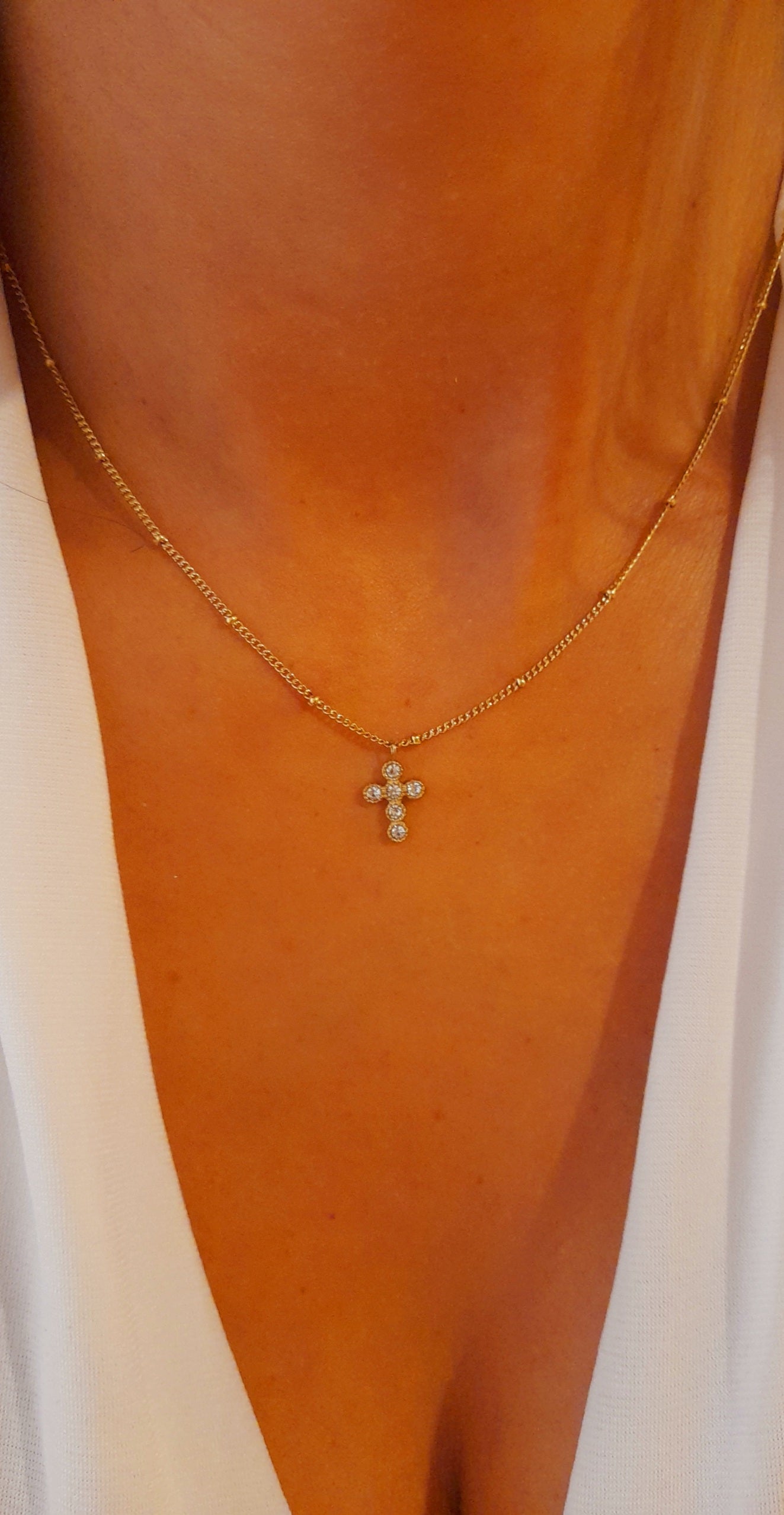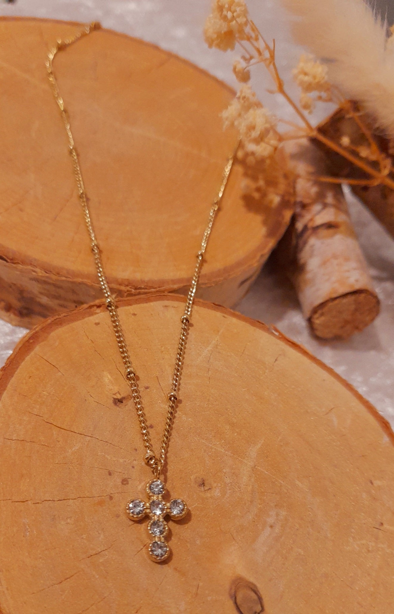 Collier Jeanne en Acier inoxydable doré et Oxyde de zirconium avec sa sublime chaine torsadée.