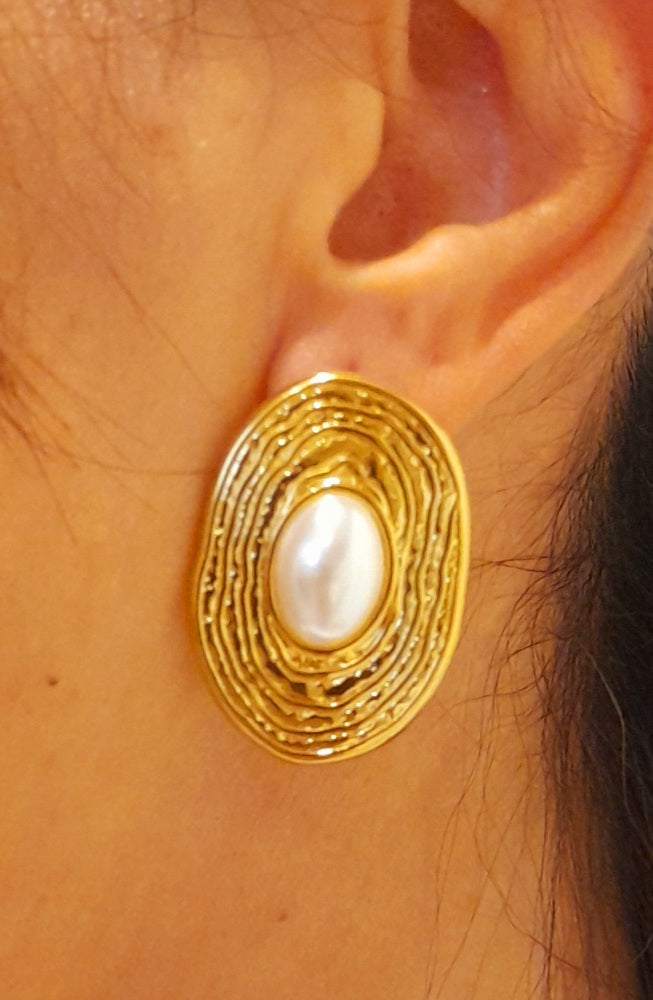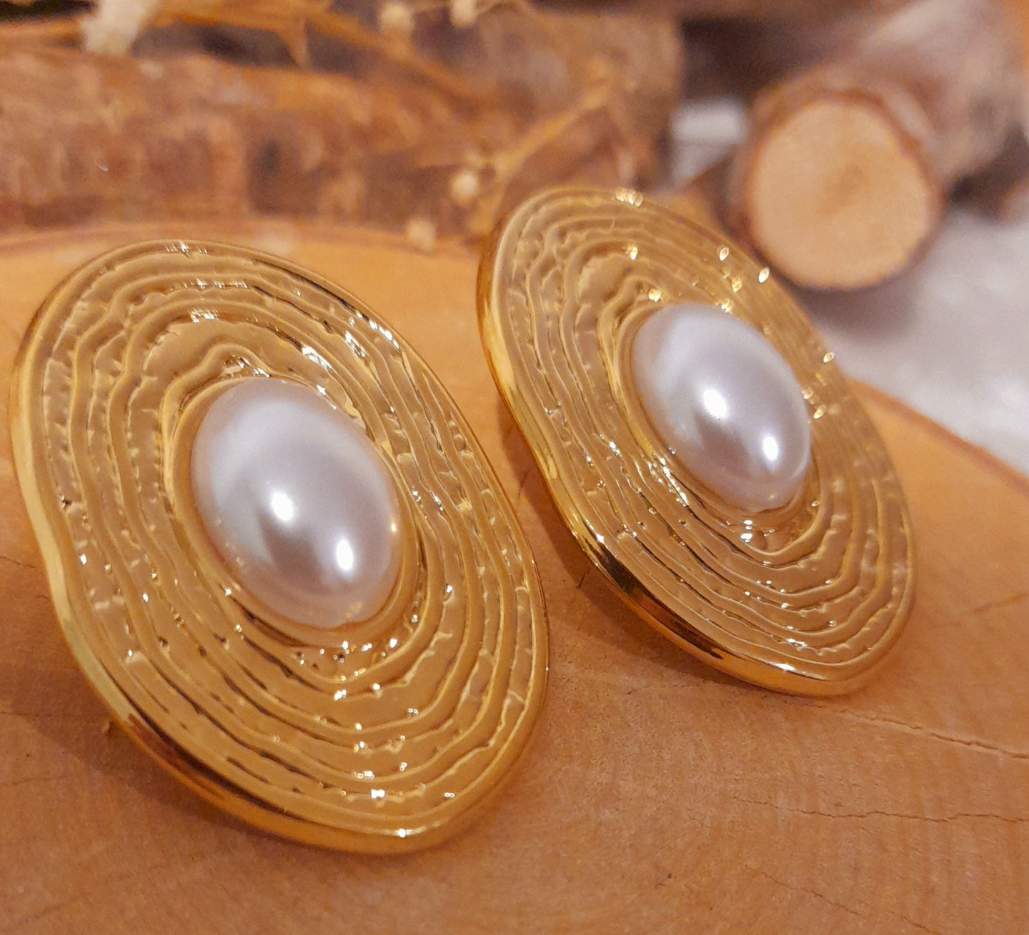 Boucles d’oreilles KANTO acier inoxydable doré & résine perle